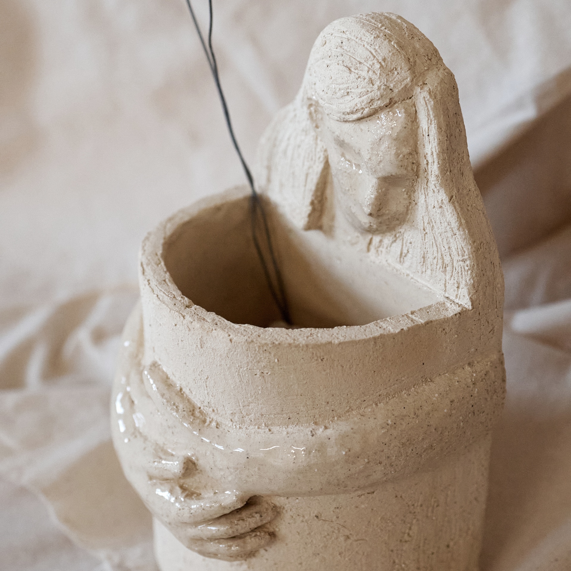 "Abraço" Vaso 125,00 € Desconto de %. Partilhar Comprar Contactar Peça moldada à mão, em grés branco sujo. Vidrada no interior, para poder conter água. Aproximadamente 11 x 17,5 x 8 cm. Para pendurar numa parede ou pousar sobre uma mesa